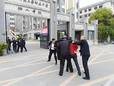 学校在小长假前组织了防爆反恐演练,这一次在针对出现一名“歹徒”情况下进行防爆反恐演练基础上,学校进行了两个“歹徒”出现的情况下的应急处置演练,并通过总结、细化、分工,形成了一套熟练的应对不同情况下的应急处置措施。